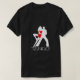 Vita och röda färg manliga och kvinnliga silhuetter av tango-par. Text Tango! under bilden. Dance och romantik svart eller mörk t-shirt för vem som helst. Du kan välja ett annat stil, färg, gender och storlek på skjortan. Ha roligt
