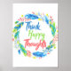 Tänka lycklig funderar på att motivera, citera väggkonst. Färglöst vår-andetag med blommor och fjädrar.