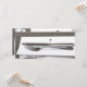 Stor fluga på bord och bord-napkin med gaffel och knivar, bild med fokus på subjekt