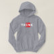 Tänka utanför lådan. Enkel textdesign med ord TÄNKA med brev inuti en röd ruta som representerar BOX. För fria tänkare.