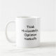 Denna mugg har på produktledninglogotypen på en sida, och ord "tänka horisontellt, optimerar vertikalt" på baksidaen.