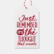 I julfest med dessa märkre i superskojet. Sarcasm, snarka, färdighet, ärlighet... spelar ingen roll du kallar det, omfamna humor den här julhelgen. Den här FONY-märkrn innehåller citat " Kom ihåg att det är tankarna som räknas" i modern vit typografisk sammansättning över en röd bakgrund. Lägg till en personlig beröring med ett anpassningsbar på baksidan med hjälp av mallen. Vita och röda färg är lätt utbytbara! Våra märkre i superskojet kommer säkert att ta med sig leenden vid alla helgdag. Använda dem för syskon, ungar, galna bästa vän och alla andra som kunde använda julhelgen Ho-Ho-Host.