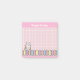 Cute Kawaii-anteckningar. Huvuddelen av färg är en ljus rosa med ett vitt rutnät mönster överst. En något mörkare rosa-banderoll finns överst och grund i anteckningarna. Längst upp på anteckningarna i den övre banderollen i vit text står ord "Tankar för i dag". Detta är en mall som kan användas som den är eller ersättas med ett eget namn eller meddelande. Mot grund är ett staket för fullt i färg med plattor i färger av lila, orange, blått, gult och rosa med lite vitt kärlek högst upp på varje platta. Bakom stängslet på den lämnat sidan finns en söt doodle kattunge med hennes ögon stängt.