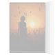 Detta är ett fantastiskt blankokort som har en underbar solnedgång över backe i avstånd med en flock fåglar under flygning och en kvinnlig silhuett som står i de långa sommargräs och som ser sig i avstånd med tankar hos någon hon bryr sig om. Inuti fäst design för att koordinera med framteckningen.
