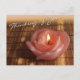 Carulmare, du tänker på 2014. Vykort med brinnande ljus formad som rosa ros, som står på en bordduk av bamboo och trasa är täckt med solljus. Ett foto med en mjuk och harmonisk atmosfär.