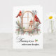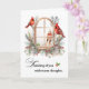 Tankar på kardinalfåglar i vinter-fönstret kort
