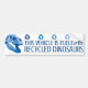 Retro den grafiska offset-stil t-rexskallen och återvinnasymbolen, med ord, "detta fordon tankas av Recycled Dinosaurs".