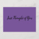 Klassi, men enkelt vykort för de tillfällen då man har en specifik fleeting tanke på någon och vill "snabbt", låt dem veta. Det kommer säkert att krävas ett mobilt samtal, men detta speciella uppehälle varar hur länge mottagaren vill. Reach ut och överraska någon med din omtänksamhet! Det finns massor av färg och många olika budskap att välja mellan.