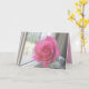 "Thinking of You" i stor grönt och vit text ovanpå ett " i ett vatten fyllt glas vas sitta i ett träfönster i ett träfönster. Hälsning kan ändras för att passa dina behov. Samma rosa ros visas på kortets baksida. Insidan är en mjuk grönt på överkanten och ljus rosa på grund. Inuti kortet finns det två prickar som du kan lägga till ditt eget meddelande - en längst upp i ett vitt skript och en på grund i grönt. Lägg till en dikt, ett citattecken, ditt eget meddelande - eller ta bort någon av textrutorna bara för färgadens bakgrund. Du kan också anpassa det här kortet med dina förnamn och efternamn. Klicka på Anpassa om du vill ändra typsnitt, göra texten större eller mindre, ta bort texten, ändra bakgrund färg ... gör den till din egen!