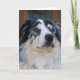 När bara en bedårande nos duger, skicka det här söta närbildsfotot av ett ständigt vaksamt australiensisk shepherd border collie mix gratulationskort. Fyll i mallfältet för att placera dina ord på insidan eller ta bort helt för att ge plats för en handskriven hälsning. Klicka på anpassa för att lägga till text på framsidan och välj en annan typsnittsstil, storlek och färg på både utsida och insida.