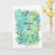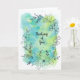 Penn- och bläckhandritade blommor på en bakgrund av blå, gröna och turkosa akvarellfläckar. Låt någon veta att du tänker på dem med detta glada kort. Insidan av kortet är tomt med gott om utrymme för dina egna känslor. Skicka ett leende idag.