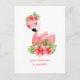 Pirrig rosa flamingo prydd med vackra rosa tropiska blommor tänker på dig vykort. Personifiera med ditt eget meddelande på framsidan eller lämna som det är.
