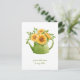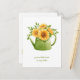 Få någon att le med dessa vackra postkort med frodiga gula solrosor i en ljusgrön gjutjärnskruka. Personalisera med din egen text på framsidan.