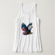 Kvinnors söta tanktop med ryggmärgsörn visas i vitt med en patriotisk örltryckning, perfekt för den fjärde juli firande. Anpassa det här objektet eller köp som det är.