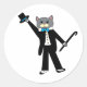 En söt grått-katt tycker om att dansa på knä i sin tuxedo, top hat och käpp på detta vackra klistermärke. Gå Kattunge, gå!