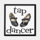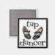 Den här designen har en bild av svarta knackskor mellan svart text som säger "Tap Dancer" på svart bakgrund. Utformningen ser bäst ut på kvadratiska magneter.