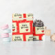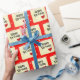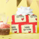 Taped gult post- it- märkt med rött hjärta på rött med vit polka dots bakgrund.