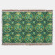 Tapestry featuring a pattern of green tropical leaves within circular frames on a leafy background. The design has a fresh and nature-inspired feel.