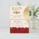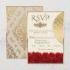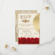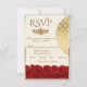Ensure your guests reply in style with this elegant RSVP card from our Cream and Red Roses collection. Set against a soft, light cream background, this design features a luxurious gold border and a delicate floral arrangement of rich red roses at the base. The sophisticated gold-tone typography adds a touch of modern glamour, making it a beautiful and practical addition to your classic, fall, or romantic wedding invitations suite. Fully customizable with your response dates and meal choices.