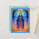 Postcard in an illustration of The Magician tarot card symbolizing manifestation, power, and divine connection. Clad in radiant robes and framed by elemental fire and celestial light, he channels energy between heaven and earth. The infinity symbol above represents limitless potential and mastery. He embodies the will to create one’s own reality.