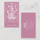 Tarotkortssjuksköterska med affärskort med sjuksköterska med skelett med dammig ro rosa bakgrund.