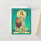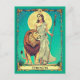 Postkort i tarotkortet med titeln "Styrka", som visar en graciös kvinna i en flödande vit klänning som håller en trästav, förkroppsligar inre mod och sinnesro. Hon står bredvid ett kraftfullt lejon, symboliserar rå styrka tamad av medkänsla.
