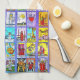 Insamling av färgade tjärkort från Major och Minor Arcana. Ange en blå övertoningsbakgrund.
