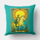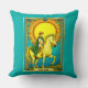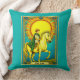 Pillow i en illustration av tjärkortet "Sol", som skildrar ett strålande sol som dominerar himmel, dess gyllene strålar som omger en pojke som rider en vit häst. Han symboliserar oskuld och vitalitet, medan den levande blå bakgrunden utstrålar glädje och tydlighet.