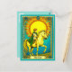 Ett vykort i ett exempel på färdkortet "Sol" som visar ett strålande sol som dominerar himmel, dess gyllene strålar runt en pojke som rider en vit häst. Han symboliserar oskuld och vitalitet, medan den levande blå bakgrunden utstrålar glädje och tydlighet.