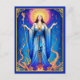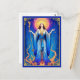 Vykort i tarotkortet "Stavarnas drottning". Stående kungligt i flytande blå klänning, strålande under en gyllene gloria, håller hon en stav, symboliserande makt och kreativitet. Omgiven av eldiga grenar och stjärnor, utstrålar hon självförtroende, värme och andlig styrka