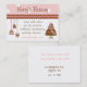Elegant och rolig visitkort som göras i brunt, vit och rosor. Gulliga diagram av en utsmyckad tårta och hängande klippta ut kakor, dekorerar den nedersta delen av denna söta visitkort. Perfekten för ett bageri shoppar, shoppar partyet, eller en oberoende beställnings- bagare. Skräddarsy textfälten för att personifiera för dig, eller ditt shoppa.