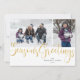 Guld skrev "Season's Greetings" i faux glitter med festive tartan mönster, 2 gratulationskort för foton.