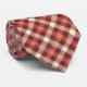 Plaid tie with shades of maroon with off-white, cream color. The angled plaid design covers front and back.