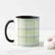 Det är ett mugg med en ny tartan som kontrolleras av mönster.