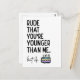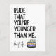 Vår Taskig att du är yngre än mig Snarkiga födelsedags vykort är en bra födelsedagspresentidé för alla som älskar sarkasm och roliga födelsedagskort.
