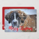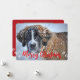 Ställe ditt foto på roligtens hela framsida med ett jullkort för husdjur. På framsidan är "God jul", i festive red, överliggande på hund som går till baksidan där man kan lägga ett extra foto och Julhälsningar sig själv.