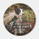 Välj en minnesmagnet som du kan fotografera ditt sällskapsdjur till. Lägg till deras namn också och levnadsår. I våra hjärtan skrivs för alltid över fotot med fyra små tass avtryck.