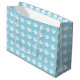 Den här presentpåsen visningar en mönster av vit tass avtryck på blå bakgrund. Det här är ett underbart objekt för tassutskrift av teman, temat för hund, katttema eller djurmatade babyduschar.