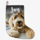 En lämplig utformning av tryckstipografi som säger "Joy" i ord. Anpassa den här julklappen med foto och namn.