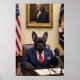 POTUS Tassar har kommit in i chattan - den här Fransken Bulldog är lämplig, har startats och spelar in en princip från Oval Office. När han hade ett klassiskt presidentval kostym och rött slips strålkastarljuset av tass och det fokuserade uttrycket. Bakom honom? Den amerikanska flagga och en porträtt av George Washington... också som en bulldog. Det är en tass-triotisk fullt av charm och gigglar. Perfekt för sällskapsvänliga patrioter, politiska narkomaner och älskare för ett värdigt skinn.