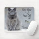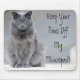 Håll den gråa kattungen lycklig! "Håll dina tassar av min Mousepad!", bredvid en arg tittar grå kattunge. Gör en underbar gåva - för något tillfälle.
