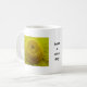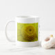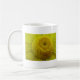 Das grosse Blütenzentrum einer gelben Margerite ist auf dieser Tasse. Text på der Mitte: ha en underbar dag. Die Tasse ist in verschiedenen Varianten erhältlich, die Farben für Rand, Henkel und Innenseite sind wählbar.