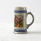 This is a ceramic beer stein-style coffee mug featuring a colorful Tom and Jerry cartoon design. The mug showcases Jerry the mouse prominently in the center, looking surprised or playful, with Tom the cat partially visible in the background. The stein is crafted in a classic German-style design with ornate blue detailing around the top and bottom rims, and a sturdy handle for easy grip. The body of the mug has a glossy finish, making it both decorative and functional — perfect for fans of the iconic cartoon series.