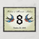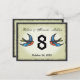 Tittar om ett edgy kort för tatuering av bröllop-bordsnummer, och titta sedan inte längre. Tatueringar i old school med blåa fåglar på vintagens grungande bakgrund med stadskörning. Hand plockade illustration av McBooboo com