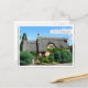 Fotovykort av en stuvad stuga i tak i typisk Cotswests-arkitektur med vacker hedge-trädgård i Chipping Campden, England, Förenade kungariket med vit ram och texten: "Cotswments".