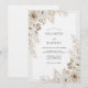 Delicate taupe blooms and leafy branches softly adorn this design, creating an ethereal and romantic mood. The muted color palette evokes a sense of timeless elegance and gentle charm. Perfect for a sophisticated and serene affair.