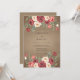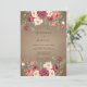 En varm taupe-bakgrund sätter en dyster och sofistikerad ton för denna design. Frodiga akvarellarrangemang av burgunderröda rosor, krämfärgade peonior och mjuka persikoblommor skapar en rik fokal punkt vid de övre och nedre kanterna. Avsmalnande eukalyptusblad och salvia gröna blad ger en naturlig, jordnära kontrast, perfekt för en rustik höstlig tillställning.