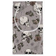 Handdragen i svart bläck, den här presentväskan har ett vackert mönster av döskallar, ro och spindelnät i kräm och toner, allt mot en elegant-grått-bakgrund.