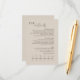 Den här chicen och det moderna bröllop-detaljkortet har en fullständig anpassade och en synlig tidslinje för dagens ordning. En contemporary med typsnitt i ett brunt svart teckensnitt ställs in mot en elegant-taupbakgrund. Detta kort är en del av en modern minimalistisk insamling av bröllop som är lätt att använda, blanda och matcha neutralt-färgad stationär under alla säsonger.