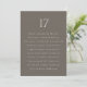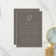 Elegant minimalist wedding table number card featuring a refined taupe background and clean white typography. This sophisticated seating card design includes a large table number with a guest list layout, making it perfect for organizing reception seating arrangements in a stylish and modern way.